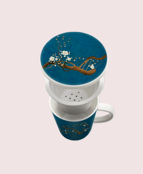Breng de serene rust van Japanse traditie naar je dagelijkse thee-ervaring met de Theemok Magnolia Blauw . Deze verfijnde mok is versierd met de takken van de magnolia. Het porseleinen filter zorgt ervoor dat je verlies perfect wordt gezet, terwijl het deksel de warmte vasthoudt, zodat je langer kunt genieten van je drankje.